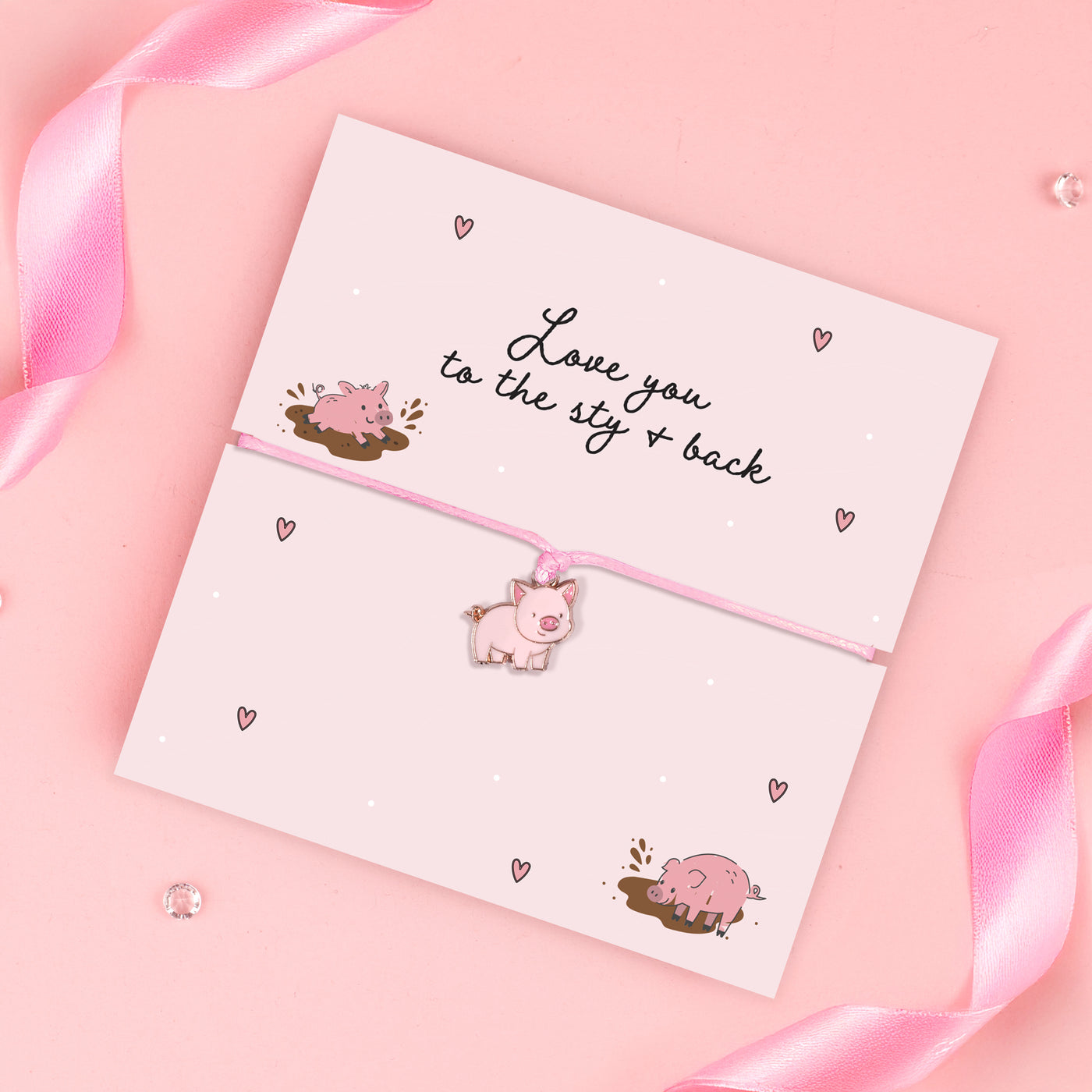 Looking for a fun, feel good way to say I love you? Our Love You to the Sty & Back bracelet is a playful reminder that love comes in many forms, from giggles and inside jokes to those big, unconditional feelings that last a lifetime. Featuring a cute, pink pig charm on a soft pink adjustable cord, our bracelet is paired with a cheerful illustrated message card that reads “Love you to the sty + back”. It’s a joyful little keepsake that works just as perfectly from a mum to her daughter as it does between partners, friends or anyone who makes your heart smile.