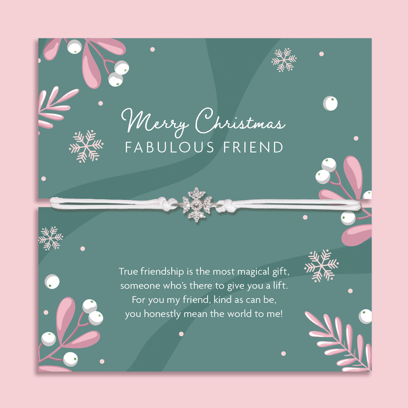 Show your best friend how much they mean to you with our Merry Christmas Fabulous Friend bracelet. Featuring a delicate silver wreath charm on an adjustable cord, this festive bracelet is a thoughtful Christmas jewellery gift to celebrate friendship and spread holiday cheer.