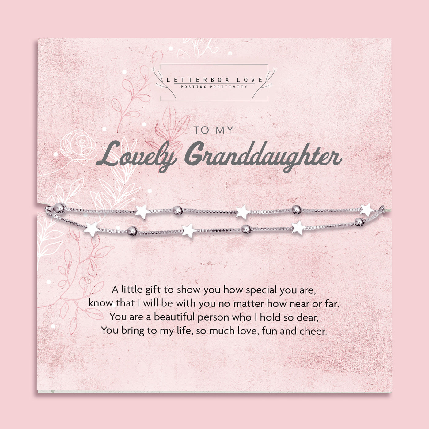 The perfect gift for your granddaughter, Our Lovely Granddaughter Bracelet is a beautiful way to show her how much she means to you. This silver-plated beaded bracelet features a heart and flower charm, symbolizing love and joy. Whether it's for her birthday, or just to show how special she is, this bracelet is a thoughtful reminder of the bond you share.