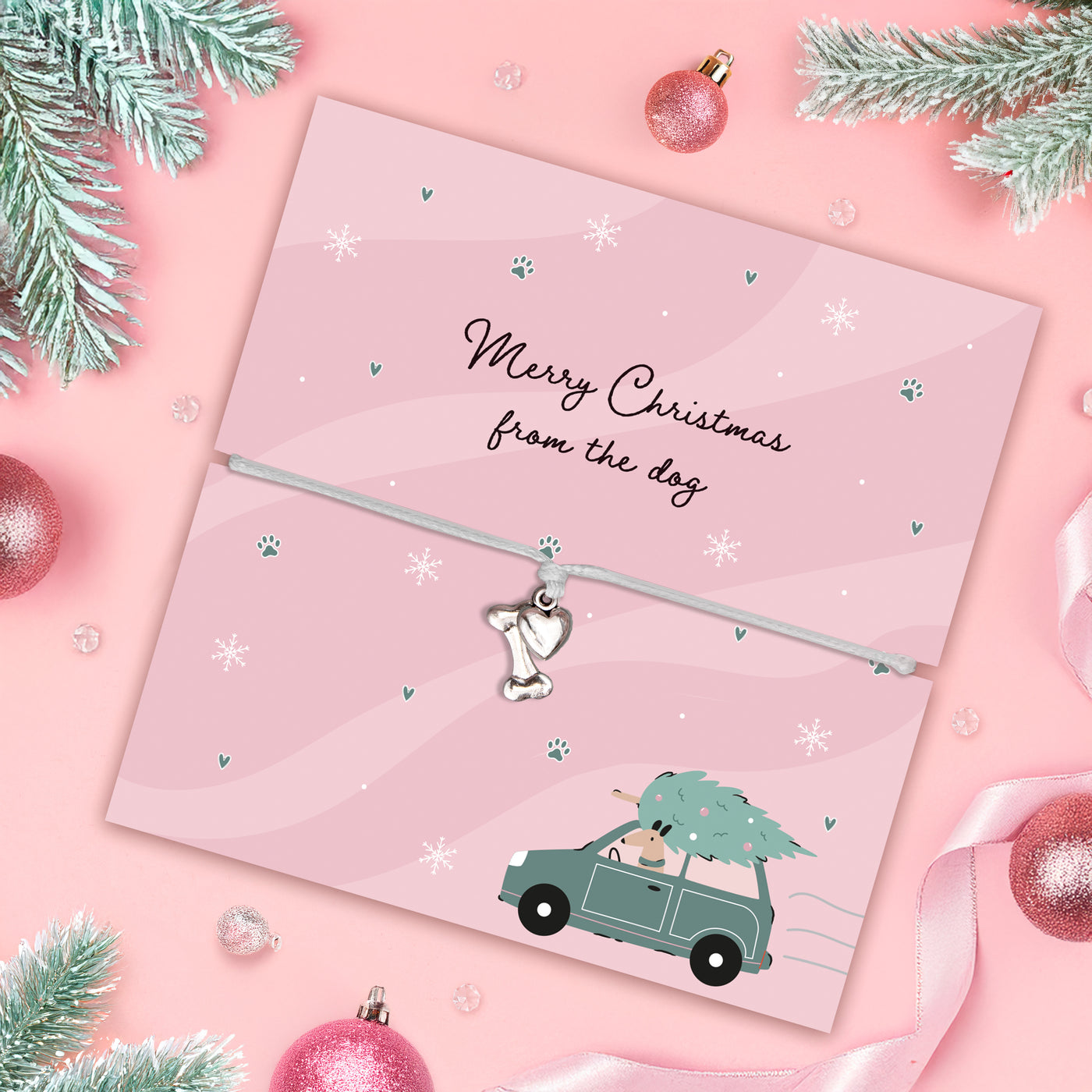 Make Christmas extra special with our Merry Christmas from the Dog bracelet. Featuring an adorable silver plated bone and heart charm on an adjustable cord, this bracelet is a thoughtful festive jewellery gift that’s sure to bring joy from your furry friend.