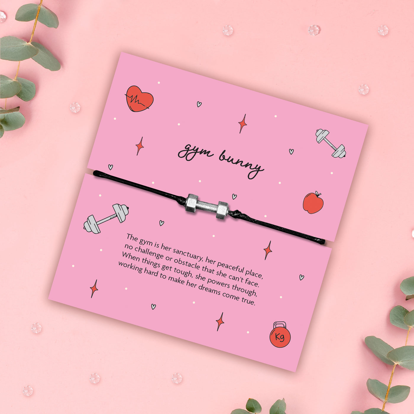 Looking for a motivational gift for someone who lives for leg day and never skips a workout? Our Gym Bunny bracelet is the perfect little reminder of strength, determination and self-belief. Designed with a minimalist dumbbell charm on an adjustable black cord, our bracelet is paired with a bold, uplifting message card celebrating resilience, focus and pushing through challenges. Whether it’s for a gym lover, fitness fan, runner or wellness enthusiast, this bracelet makes a meaningful yet fun gift she’ll actually wear. Ideal as a fitness gift, gym motivation gift, stocking filler or encouragement present, our bracelet is lightweight, comfortable and fully adjustable to fit most wrist sizes.