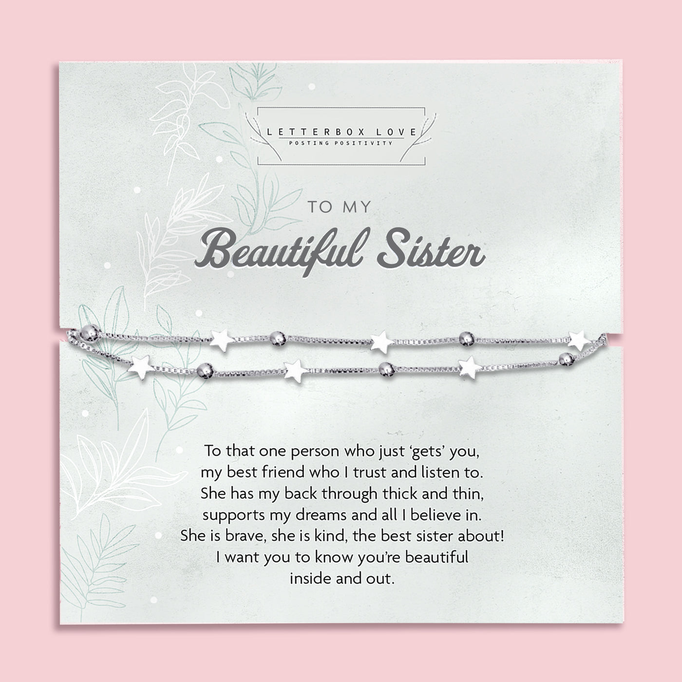 Whether she’s your actual sister or someone who gets you like a sister, she deserves the best. Our 'Beautiful Sister' bracelet is the perfect gift for your sister! This silver-plated beaded bracelet features a heart and flower charm, symbolizing love and support. Whether for her birthday, a celebration, or just because, this bracelet is a meaningful way to remind your sister how much she means to you.
