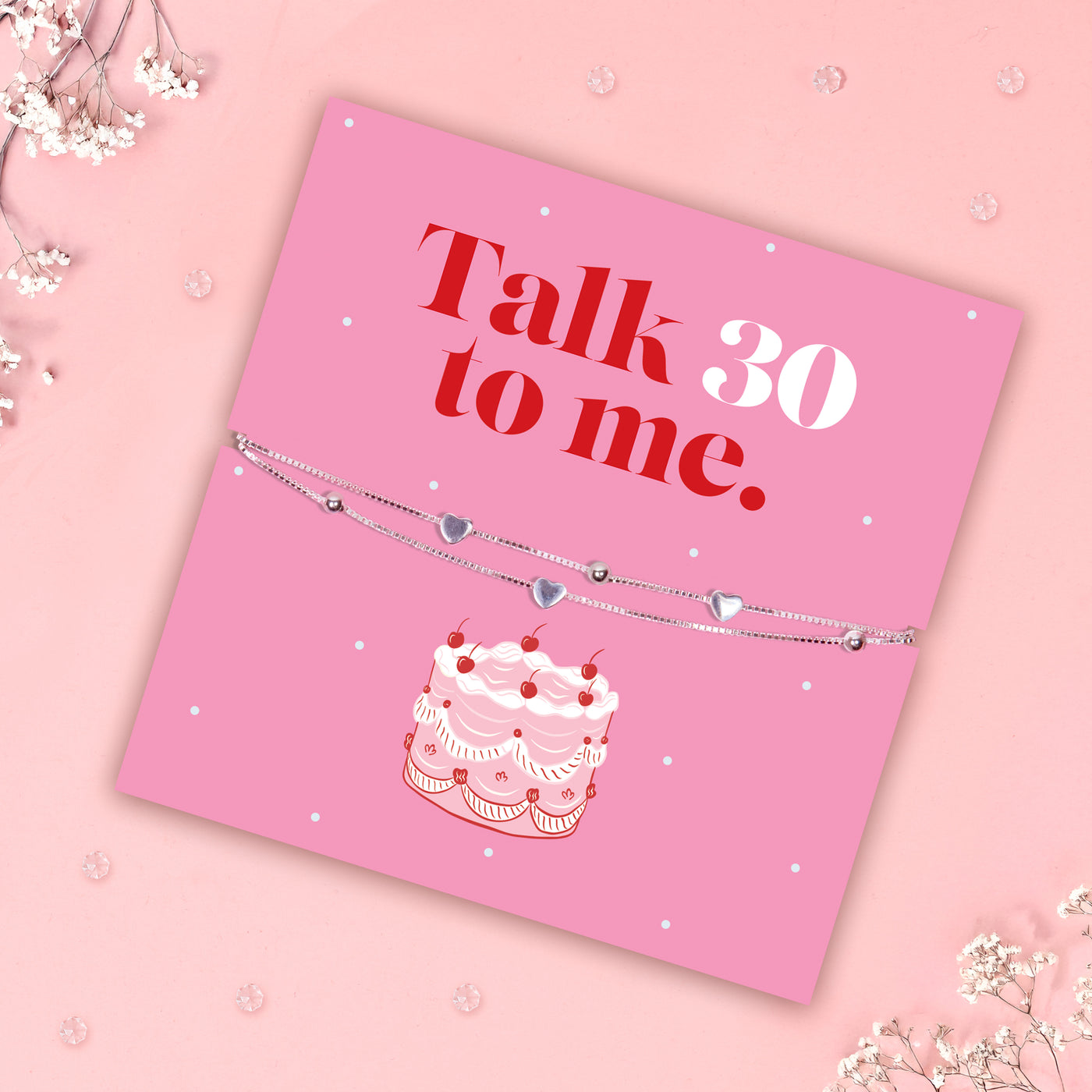 Celebrate a milestone birthday in style with our ‘Talk 30 to Me’ bracelet, a fun and meaningful gift designed to make turning 30 feel extra special. Made from high quality 925 sterling silver, our bracelet features dainty heart charms along a delicate 20cm chain a modern, feminine keepsake she can wear long after the candles are blown out.